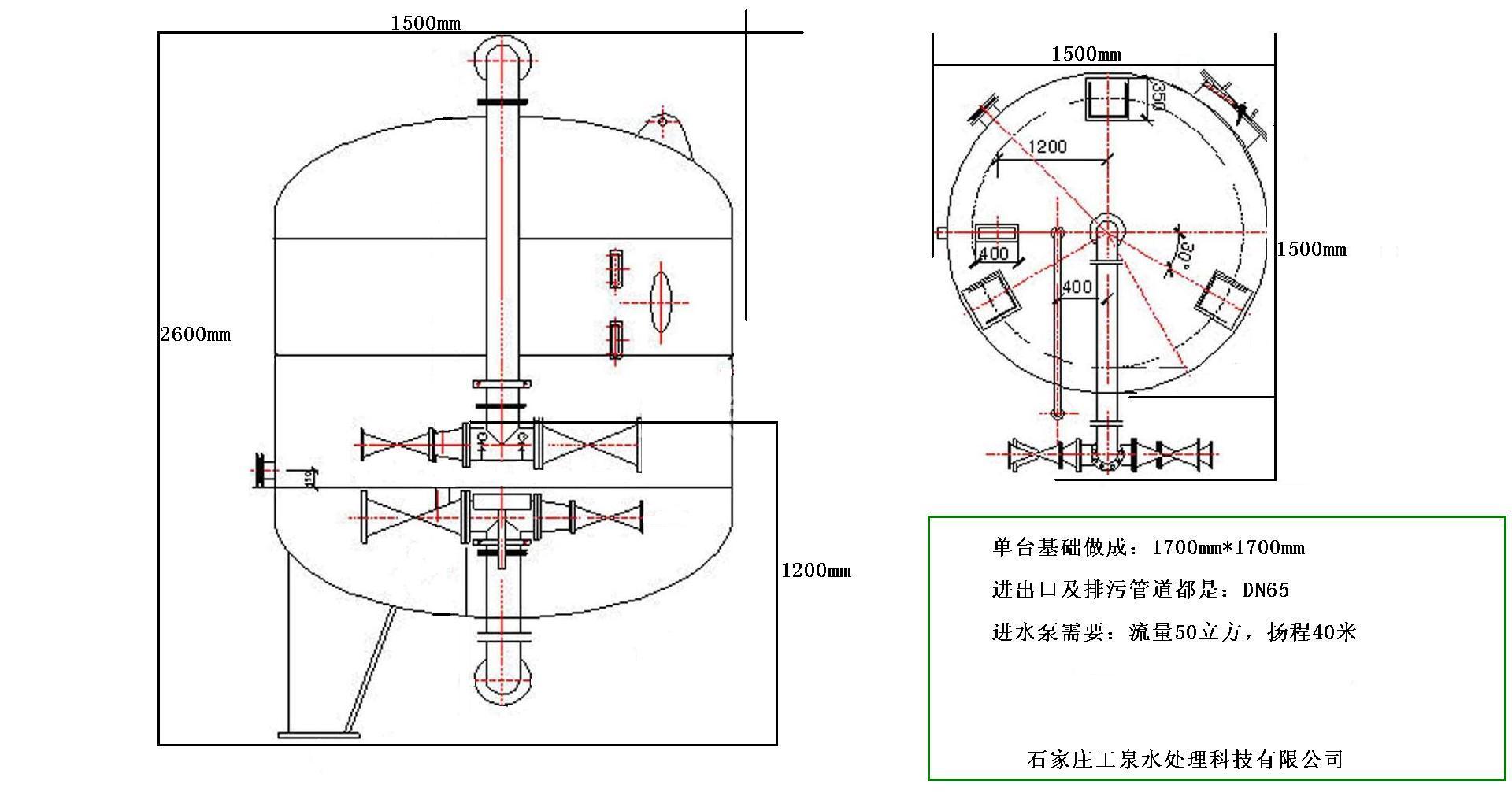 工泉牌石英砂過濾器DN1500型基礎圖: